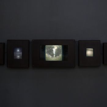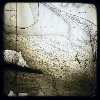 The film installation Sunk Island consists of a series of monitors, including a central larger screen showing a 12-minute film, surrounded by 4 smaller screens showing shorter film loops. The work content is drawn from archival maps, images and footage, studio still image sequences and film and stills shot in and around Sunk Island over the course of 3 years.