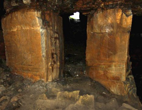 entrance to labyrinthine disused stone mines, Waterfoot, still from film 'Hinengrabe', commissioned by Horse and Bamboo Theater Company, Rossendale, 2008